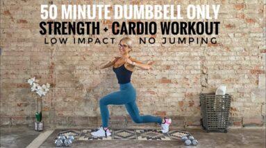 50 Minute Dumbbell Only Total Body Strength + Cardio Workout | Low Impact | No Jumping | Challenging
