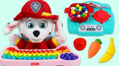 Cooking Paw Patrol Baby Marshall Healthy Play Doh Meal & Toy Velcro Cutting Fruits and Vegetables!