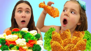 Ruby and Bonnie Pretend Play School & Learn to Eat Healthy food